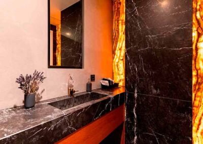 Chez Lampertz, nous sommes fiers de la qualité de nos installations de salles de bain en pierre naturelle, mais nous comprenons également que des problèmes peuvent parfois survenir. Pour cette raison, nous maintenons en permanence un stock de pierre naturelle, ce qui nous permet de répondre rapidement à tout besoin de remplacement ou de réparation. Cela signifie que si un problème survient, nous pouvons agir rapidement pour réparer ou remplacer toute partie de votre installation, en veillant à ce que votre salle de bain soit toujours en parfait état de fonctionnement et esthétique.